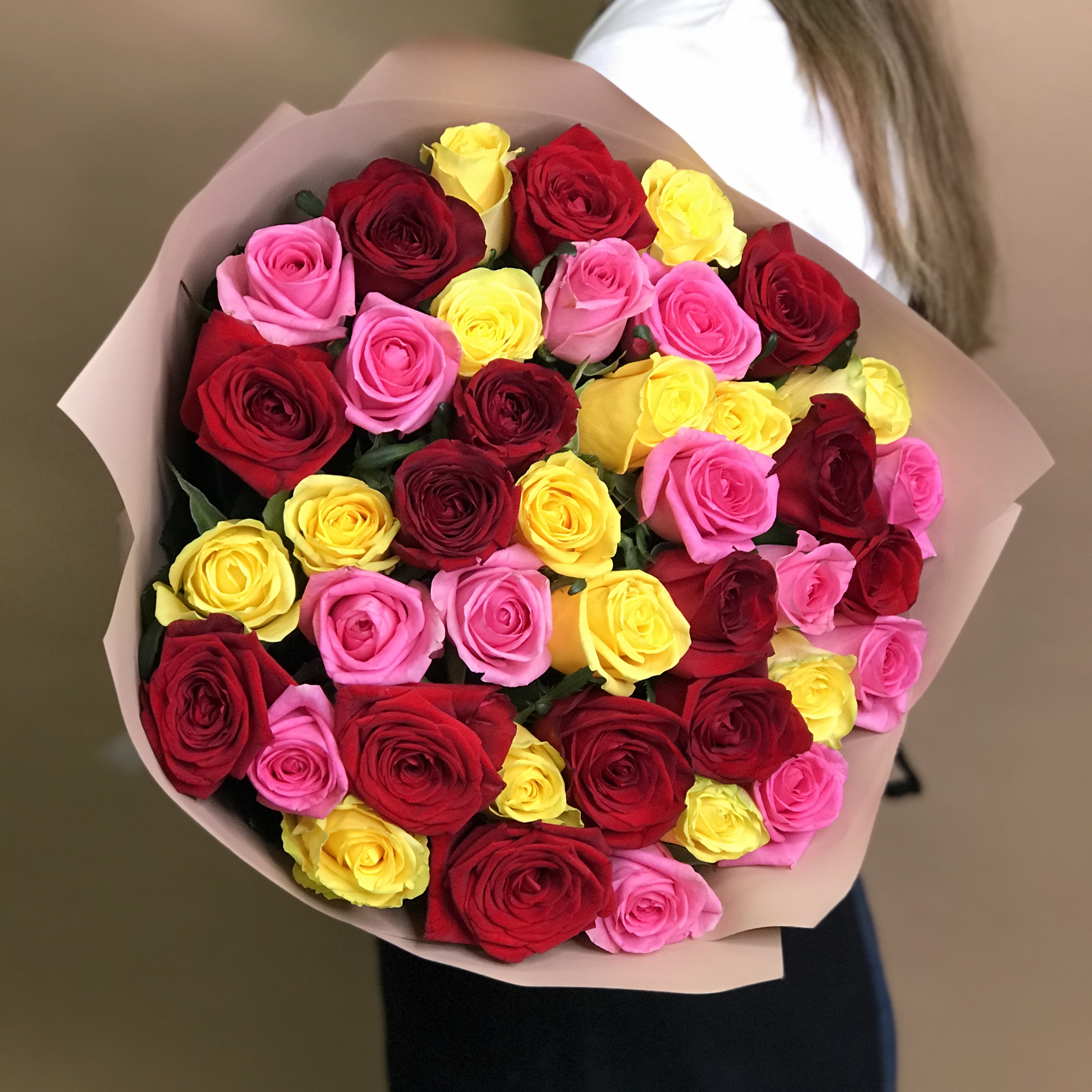 Мы предлагаем выбрать цветную пленку на свое усмотрение. Закажите яркий микс в Flor2u, и его доставка по Нижнему Новгороду не заставит себя ждать. Оперативно также отправим цветочные композиции в другие регионы России. Свежесть бутонов мы гарантируем, фото букета для одобрения предварительно покажем клиенту.